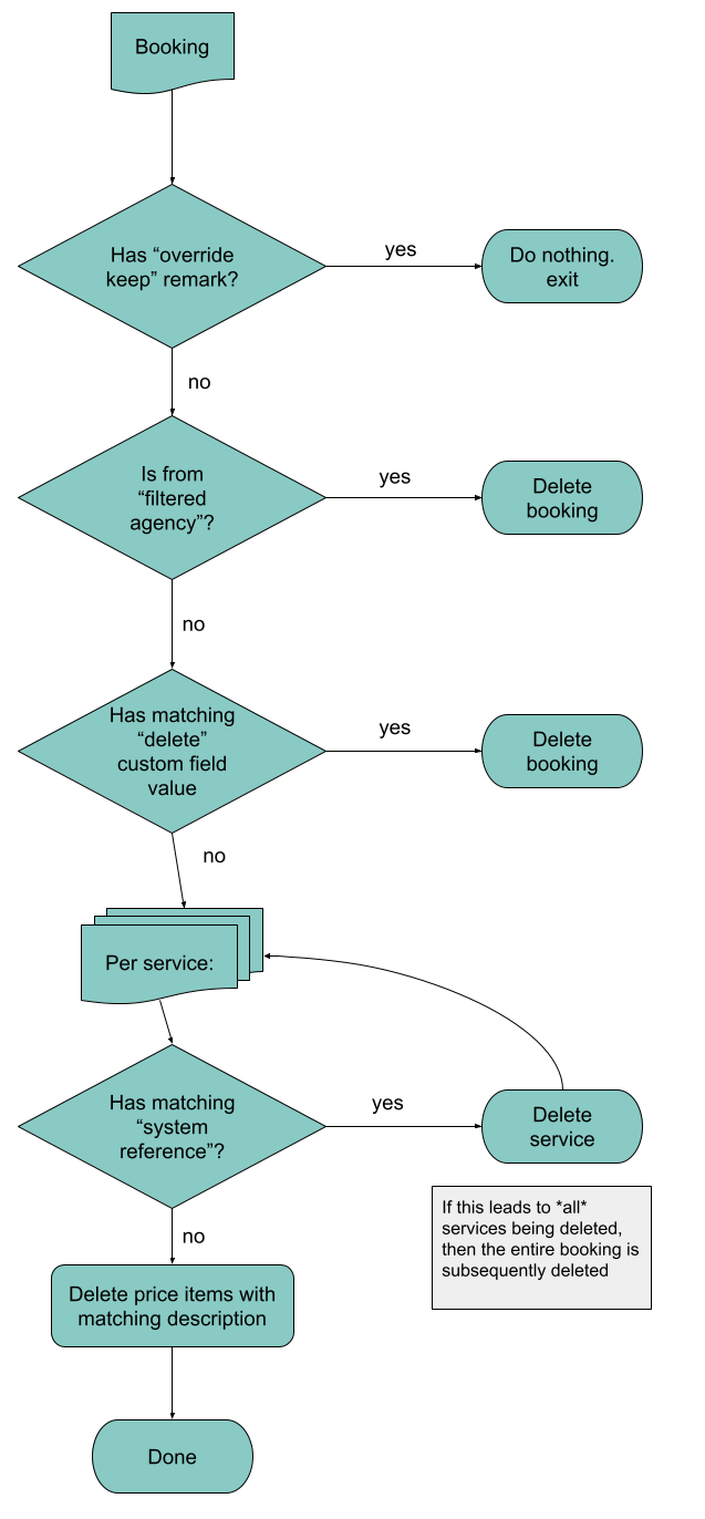 What happens then is that the custom field remark pattern will recognize the matching remark and add a custom field value "STOP" to the booking. The Data Filter will pick up on that field (thanks to the mapped "filterRemark"), check the value against "Delete if custom field value pattern", and delete the booking if there is a match.
