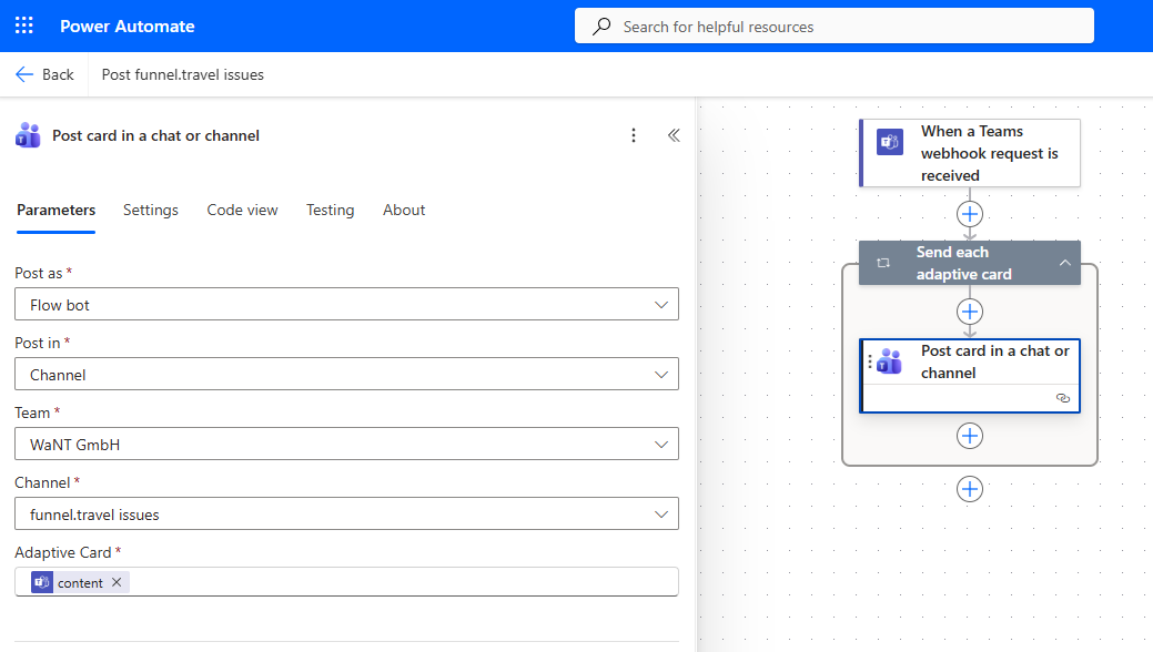 Define the notification with type "Teams" and the Power Automate URL as notification target.